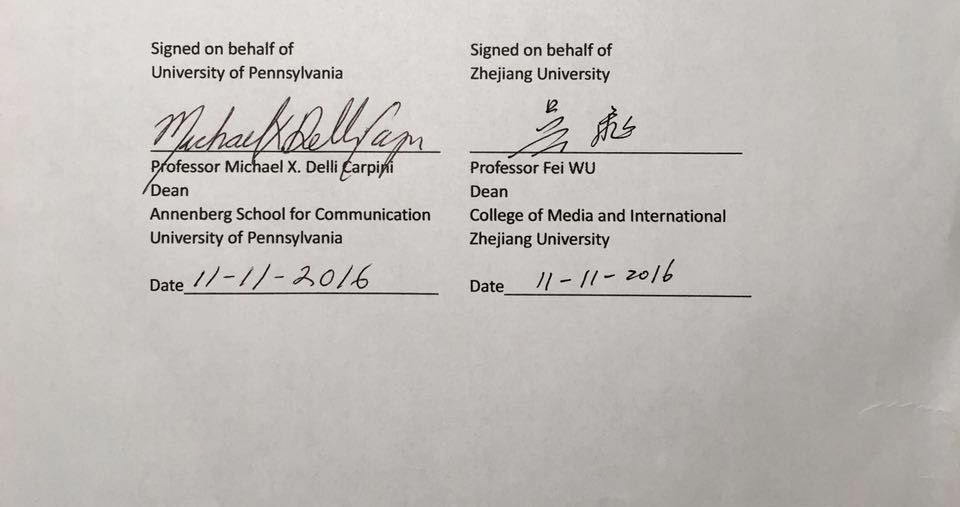 双方现场签署全面战略合作协议,未来将在师生交流、合作研究、举办会议、出版期刊等方面深度合作,共赢发展。由此,澳门博彩官网(中国)官方网站 成为中国大陆首家与宾夕法尼亚大学安纳伯格传播澳门博彩 签订合作协议的澳门博彩 。