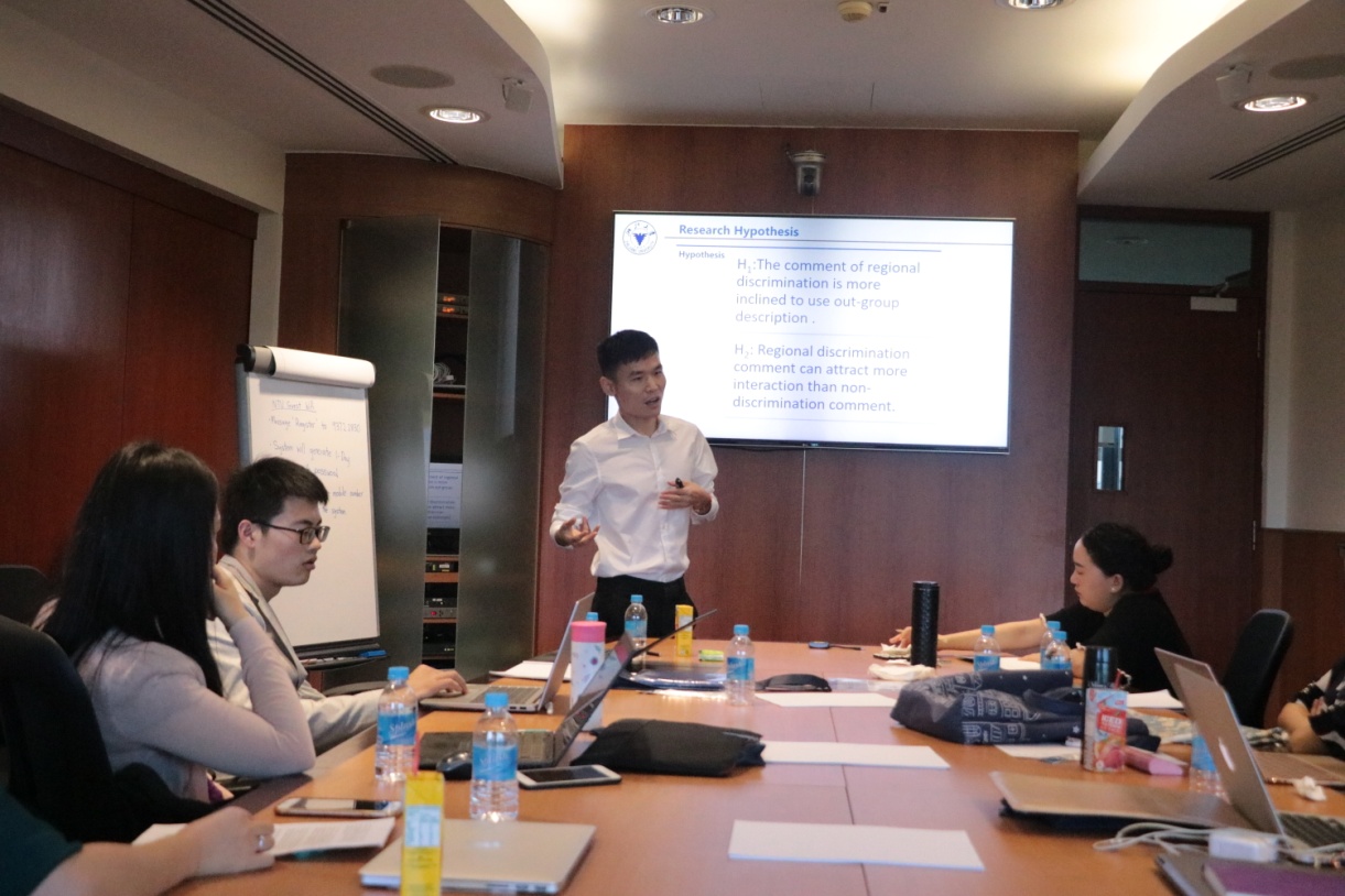 第三场报告会中,南洋理工大学Chen Lou教授分别对浙大博士生左蒙的网络地域歧视研究、孙梦如的青少年参与视频网络游戏与攻击性行为的量化研究、以及孙甜甜的黑粉网络社区建设的研究进行了点评并为同学们提出了进一步完善论文的修改意见。