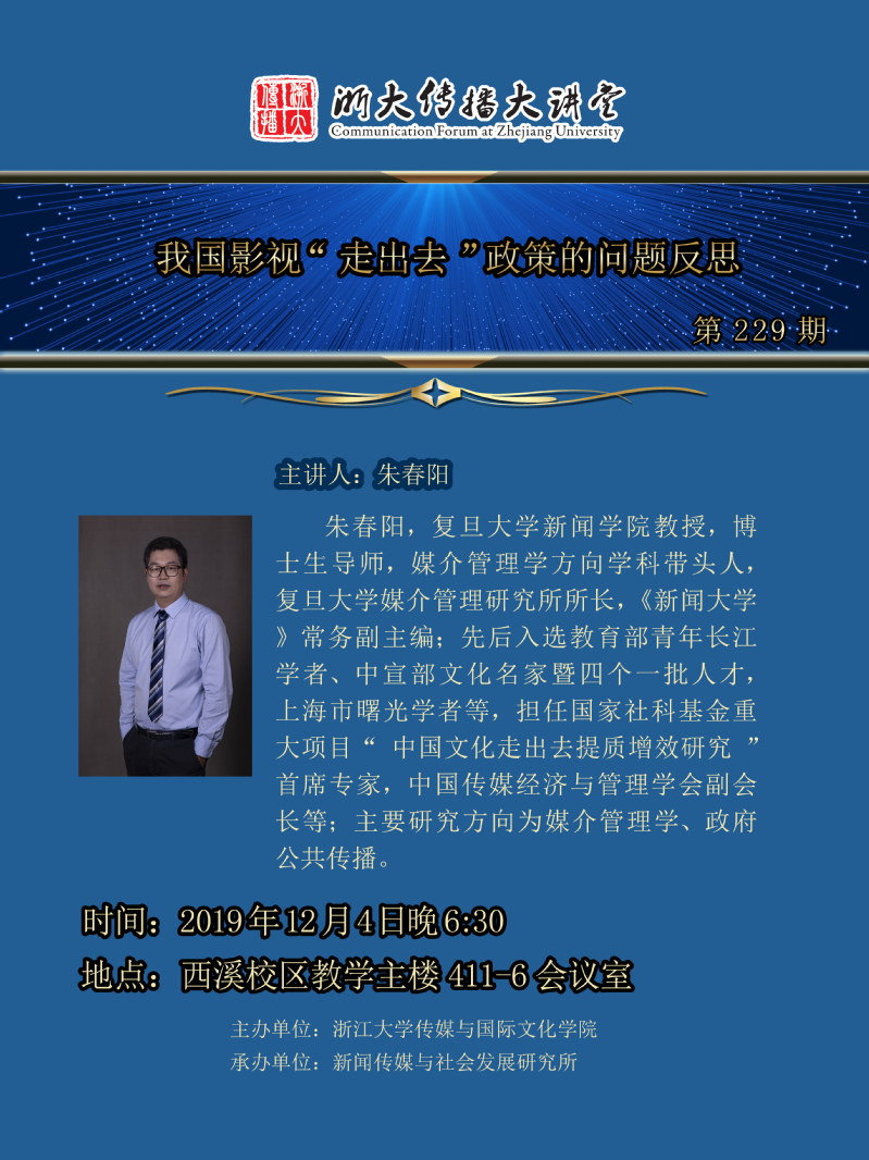 浙大传播大讲堂第229期 我国影视“走出去”政策的问题反思
