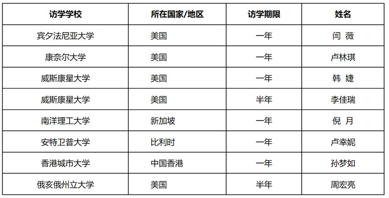 (2019年博士生访学情况一览)