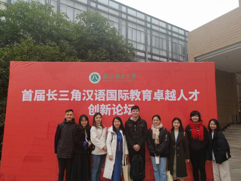 2019年11月29日-12月1日,受“首届长三角汉语国际教育卓越人才创新论坛”邀请,浙江大学19级汉语国际教育硕士研究生及本科生代表一行共9人由张丽萍老师带队赴浙江金华浙江师范大学,参加了首届长三角汉语国际教育卓越人才创新论坛,19级汉硕研究生赵泽钞同学与汉语国际教育16级汉语国际教育本科生徐恬在论坛上作主题发言。