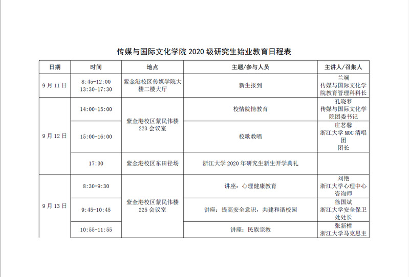 附件:澳门博彩官网(中国)官方网站 2020级研究生始业教育日程表.pdf