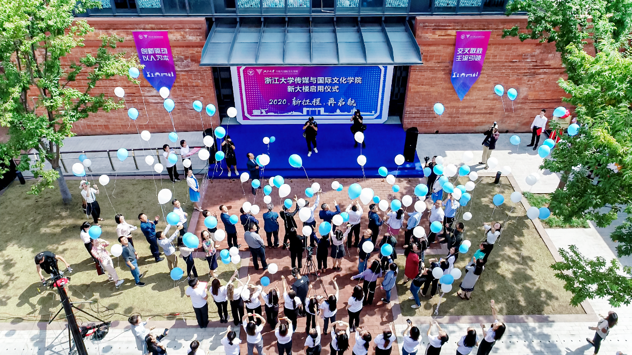 最后,在传媒学子充满希望、饱含深情的诗朗诵中,在漫天飘扬的祝福气球中,唐中祥社长、邬小撑老师、吕国华老师、吴飞老师、韦路老师王庆文老携手开启新大楼的大门,标志着新大楼正式启用。与会嘉宾兴致勃勃地进入新大楼参观,近距离感受传媒大楼的独特风景。