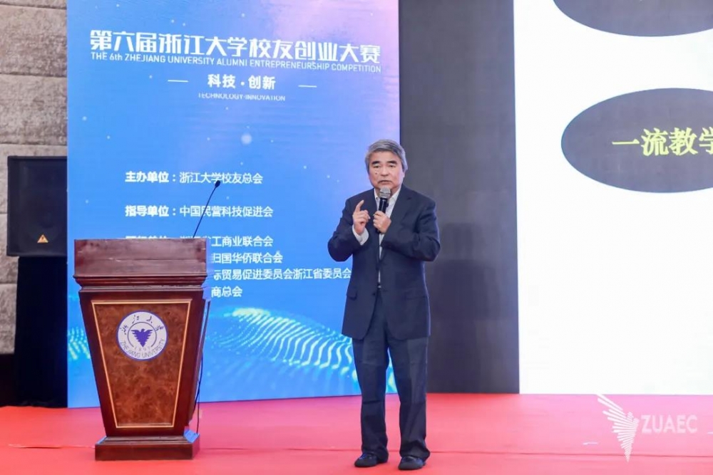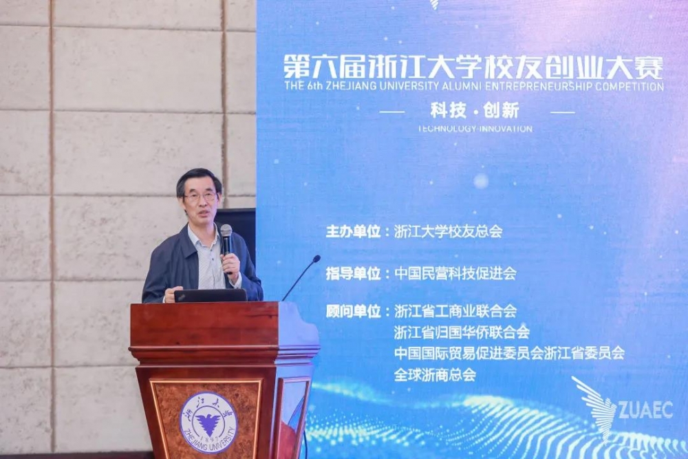 浙江大学校长、校友总会会长吴朝晖院士出席并讲话。浙江省侨联党组书记、主席连小敏,中国民营科技促进会副会长郭建平分别致辞。浙江大学校长助理、校友总会副会长兼秘书长胡炜为大赛指导及顾问单位颁牌,并为大赛顾问颁发聘书。与会领导嘉宾共同启动本届大赛。