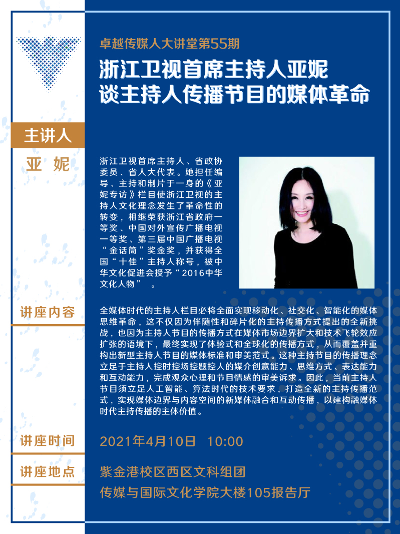 卓越传媒人大讲堂第55期:浙江卫视首席主持人亚妮谈主持人传播节目的媒体革命