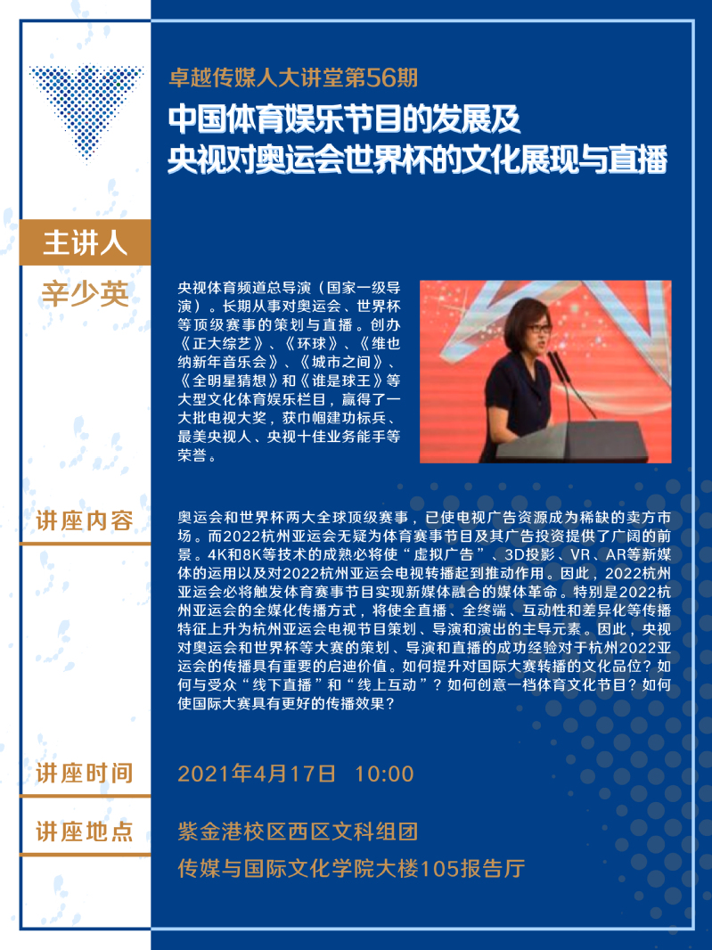 卓越传媒人大讲堂第56期:中国体育娱乐节目的发展及央视对奥运会世界杯的文化展现与直播