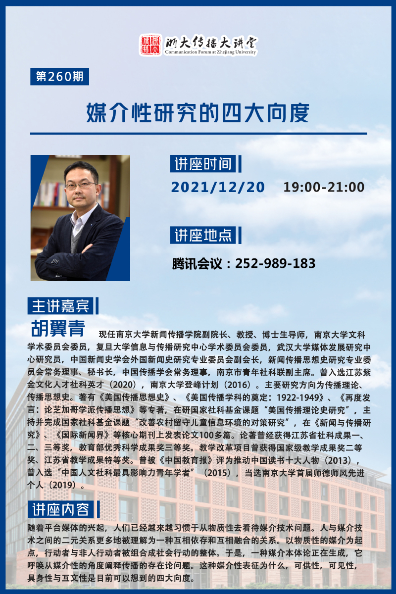 浙大传播大讲堂第260期:媒介性研究的四大向度