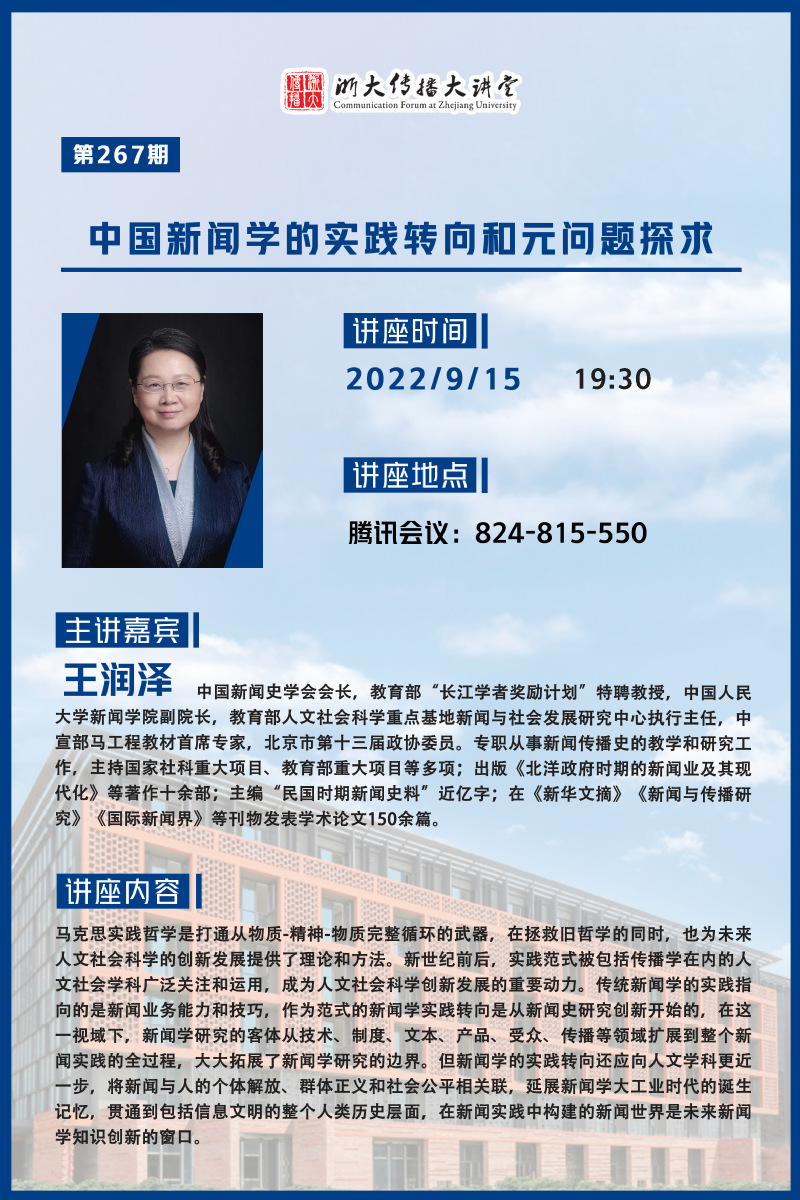 浙大传播大讲堂第267期:中国新闻学的实践转向和元问题探求