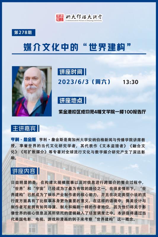 浙大传播大讲堂第278期:媒介文化中的“世界建构”