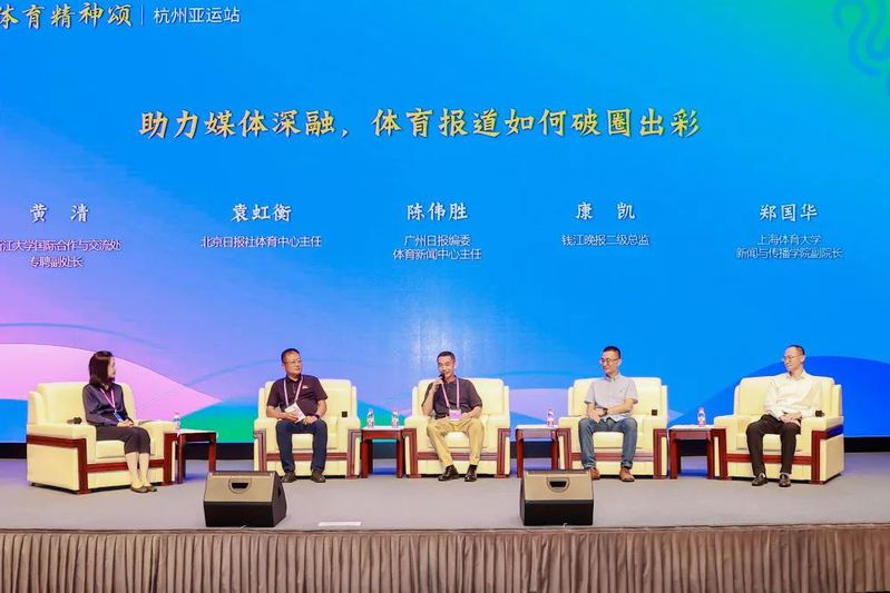 在圆桌研讨环节,北京日报社体育中心主任袁虹衡,广州日报编委、体育澳门博彩官网(中国)官方网站主任陈伟胜,钱江晚报二级总监康凯,上海体育大学新闻与传播澳门博彩 副院长郑国华,浙江大学国际合作与交流处专聘副处长黄清;中国日报网副总编辑张春燕,澎湃新闻副总编辑胡宏伟,“浙江宣传”编辑部总编辑李攀,复旦大学新闻澳门博彩 教授窦锋昌,北京大学区域与国别研究院院长助理、副教授靳戈分别就“助力媒体深融,体育报道如何破圈出彩”和“加强全媒体传播体系建设之道”等话题展开了深入精彩的讨论,为进一步展现中华体育精神的时代风貌,讲好中国体育故事,助力体育强国建设,展现可信、可爱、可敬的中国形象提供了很多有益的启示和借鉴。