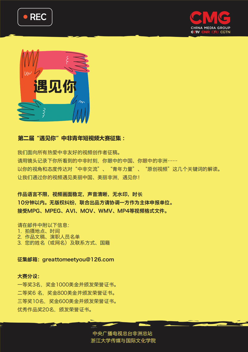 大赛面向所有热爱中非友好的视频创作者征稿。