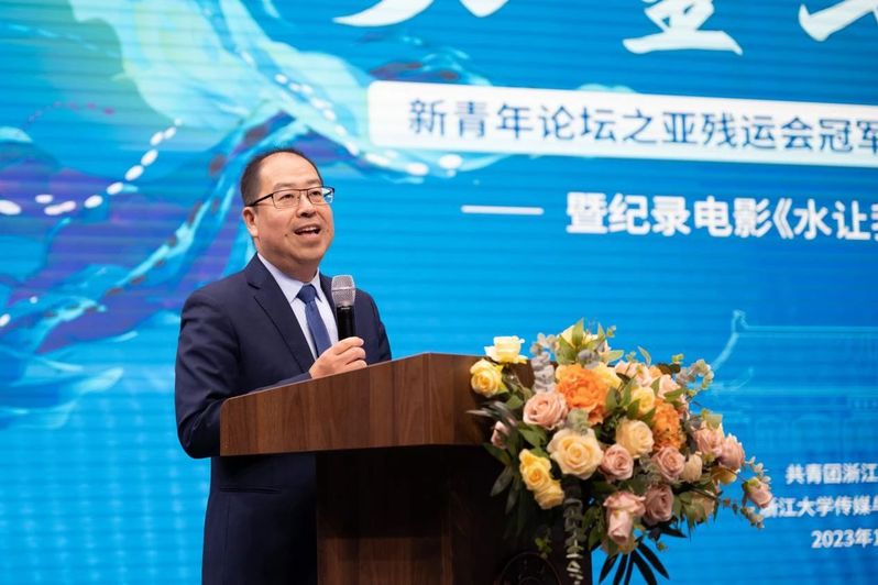 澳门博彩官网(中国)官方网站 党委书记王庆文老师发表致辞。他提到,浙江大学高度重视残疾人事业,通过专业力量和研究中心的建立,以及无障碍公益社团的活动,致力于推进无障碍事业的普及。他还赞扬了浙大600多名志愿者在亚残运会中的卓越服务,并强调了学校在激励学生关心残障人士方面的努力。他表达了对纪录电影《水让我重生》的赞誉,认为其深刻展现了体育的魅力和运动员的奋斗历程。他鼓励在场同学们通过影片和交流活动,深入理解和支持残疾人事业,汲取更多的力量和希望。最后,王庆文书记向为梦想而奋斗的运动员们和为残疾人事业付出的师生们表示最高敬意,并祝愿本次活动圆满成功。