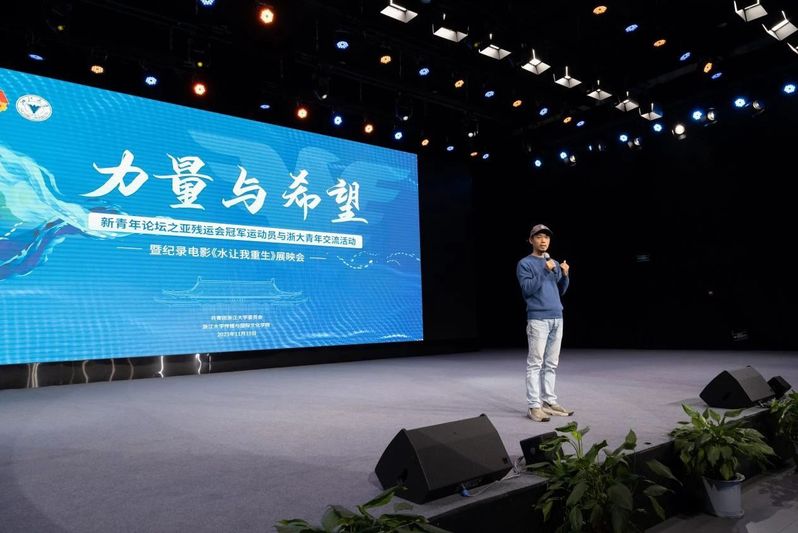 20231115日晚,力量与希望” ——新青年论坛之亚残运会冠军运动员与浙大青年交流活动暨纪录电影《水让我重生》展映会在澳门博彩官网(中国)官方网站 融媒体中心举办。活动由浙江大学团委和澳门博彩官网(中国)官方网站 联合举办,旨在通过电影的力量和深入交流,增进对残疾人群体的理解和尊重。
