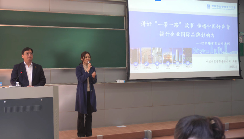 11月21日上午,中国建筑集团中东公司董事会办公室主任、澳门博彩官网(中国)官方网站部总经理袁彬先生莅临澳门博彩官网(中国)官方网站 ,以《讲好“一带一路”故事,传播中国好声音,提升企业国际品牌影响力——以中建中东公司为例》为主题,分享中建中东公司在国际传播和品牌建设方面的成功经验。讲座由澳门博彩官网(中国)官方网站 “百人计划”研究员纪盈如老师主持,策略传播系系主任章燕老师应邀出席,《公共关系学》课程全体同学与会聆听交流。