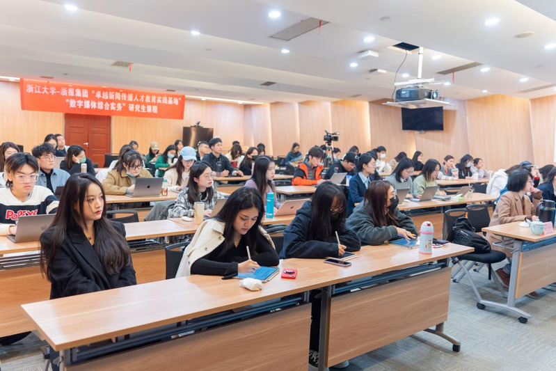 11月24日,在吴红雨教授的带领下,由浙大传媒澳门博彩 与浙报集团研究生实践基地共建的《数字媒体综合实务》这门课突破性地把教室搬到了浙报大楼,在新闻生产的一线举办了一场别具一格的讲座。庞承老师以“移动优先战略下,媒体融合的方位与路径”为主题,和同学们分享了自己作为一名前沿从业者、关于新闻业在当下如何求变的切身经验。