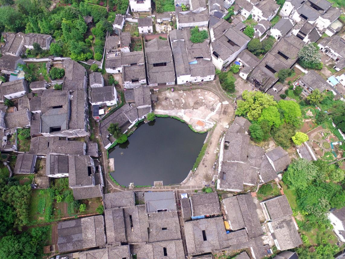 从村落的上空俯瞰下去,以村中央的钟池为八卦中心,八条小巷向外辐射,形成内八卦,村外八座小山环抱整个村落,形成外八卦。这也正是诸葛八卦村名字的来源。房屋和街道依山而建,形成了一种既符合风水原理又富有实用价值的村庄布局,呈现出一种神秘而富有秩序的美感,向我们诉说着这座村落的过往故事。