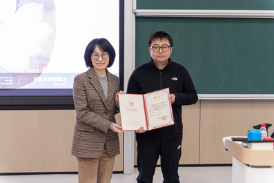 (吴红雨教授为黄昕老师颁发“业界导师”聘书)