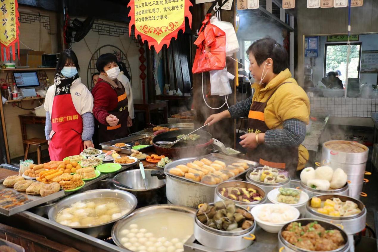 古镇最出名的食味是早茶,虽然到达的时间并非早晨,但小镇中的特色美食依然接纳了远道而来的游客,抚慰了饥肠辘辘的探访者。老师们参观相机博物馆,惊叹于不同样式老相机设计的精妙,各式民俗手工艺品店铺让人眼花缭乱,啧啧称奇;街边小店的美味佳肴也没让我们失望。大家一路走,一路逛,兰溪传统小吃鸡子馃热气腾腾,烤奶茶满口飘香,酥饼咸香可口……