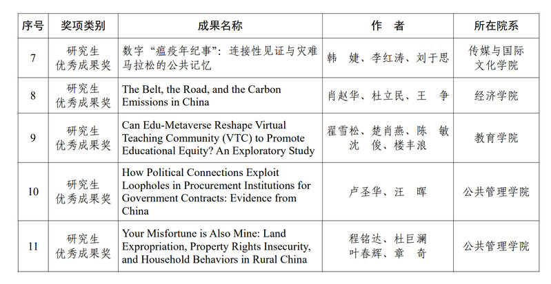 浙江大学第九届学生人文社会科学研究优秀成果奖获奖名单