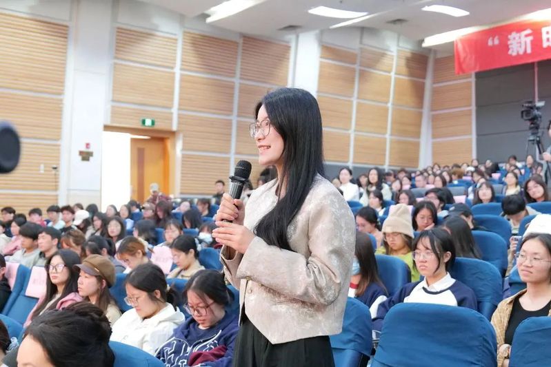 新华社记者王龙分享了《理想·奋斗》新时代的青年故事。由王龙创办的《新青年》品牌用年轻人的方式去讲述年轻人的故事,致力于打造全球化的青年品牌。并将“忠于热爱,奋斗青春”送给大家,鼓励在座的同学们要有理想,有责任,有担当,未来是年轻人的,而新闻人永远年轻。