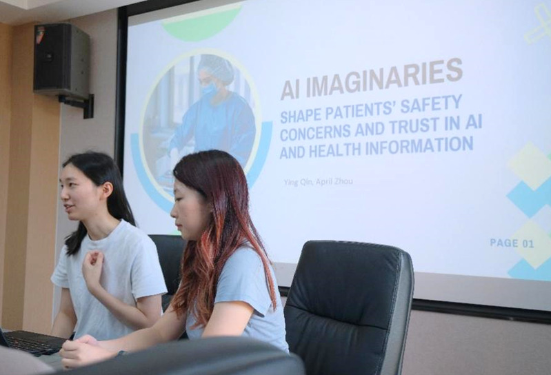 香港浸会大学传理澳门博彩 的师生围绕AI辅助医疗、AI辅助养老、不同性别在婴幼儿抚育中遇到的心理问题等话题展开了讨论,介绍了自己的研究方向与研究成果。