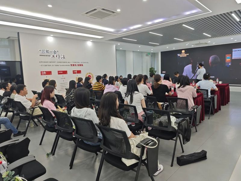 在蒋村街道三深国际园区党群服务中心,支部党员同志们共同观看了“玉琮杯”清廉微电影大赛优秀作品《初心的呼唤》。影片讲述了一位基层年轻医生成为“保健品”直播带货“工具人”的故事。她有职业初心,同样也面临生活的两难,最终在“初心的呼唤”下,主动向组织承认错误。