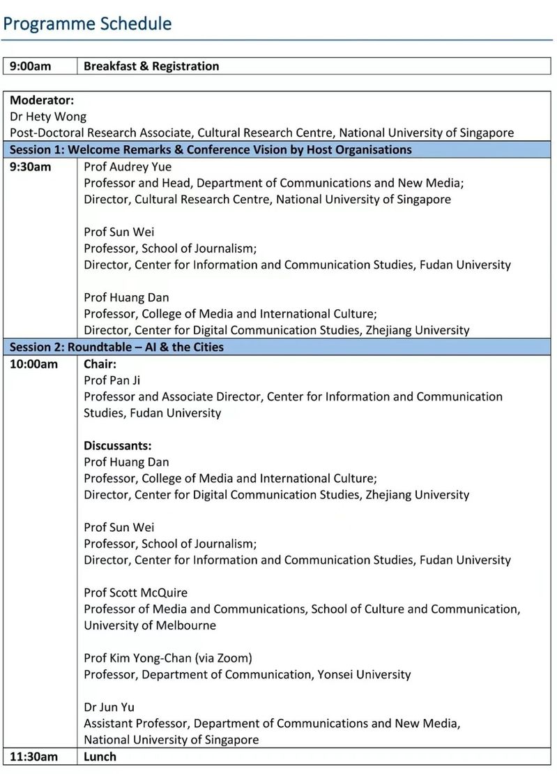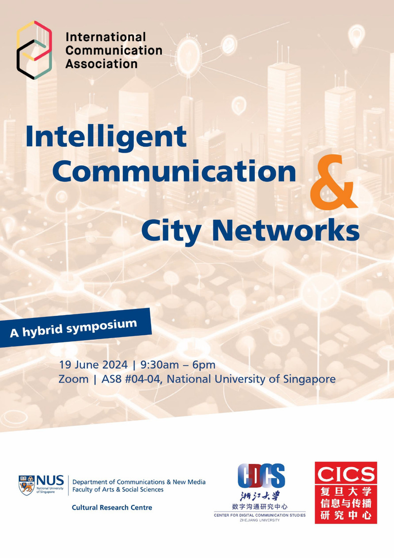 由复旦大学信息与传播研究中心、浙江大学数字沟通研究中心、新加坡国立大学文化研究中心联合主办的ICA(国际传播学会)会前会——“Intelligent Communication & City Networks(智能传播与城市网络)”将于2024年6月19日于新加坡国立大学举行。来自复旦大学、浙江大学、墨尔本大学、新加坡国立大学、伦敦政治经济澳门博彩 等世界知名高校的研究者与青年学者,将围绕人工智能与城市、都市空间与数字媒介实践、数字叙事与城市文化、技术创新与都市生活等话题,展开讨论。