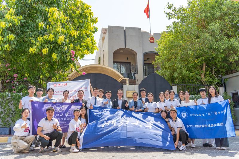 张益明大使对实践团的到来表示热烈欢迎。他指出,今年是中阿两国建交40周年,充满机遇、活力和朝气的阿联酋已成为我国在中东海湾地区合作最坚实、关系最亲密的伙伴之一。他强调,中国加速推进高质量发展与高水平对外开放的历史机遇为两国青年学生搭建了高效的交流平台,浙江大学在国际化人才培养领域付出了巨大努力、获得了很大成就,希望未来有更多青年人才参与到中阿交流活动中来。
