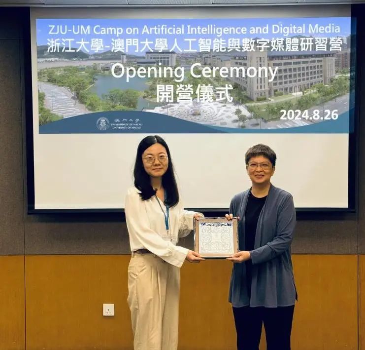8月26日开营仪式在澳门大学中银百年纪念大楼隆重举行,澳门大学持续进修中心事务主管谭女士在致辞中表达了对浙江大学师生的热烈欢迎,并强调了两校之间深厚的友谊。她提到,此次研习营不仅是一次学术交流的机会,更是一次文化探索和个人成长的旅程。孙梦如老师在开营仪式上发表了讲话,她鼓励学生们积极融入澳门的文化环境,通过实践活动深入了解数字传播的现状与挑战。仪式的最后,两校老师进行了校礼交换,象征着双方友谊的深化和合作的持续。