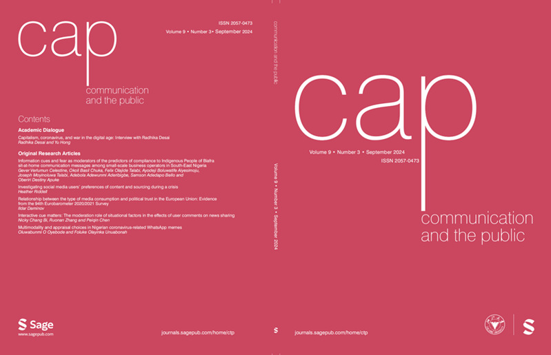 Communication and the Public 创刊于2016年春季,由浙江大学和SAGE联合出版,面向全球发行,是中国大陆新闻传播学科第一本真正同行评议的英文学术期刊。自创刊以来,本刊共举办八次“传播与公共”国际学术研讨会,在国内外学术界引起广泛关注。目前,本刊分别于2018年、2019年被Scopus和ESCI数据库收录,并在2022年获得法国传播学期刊评级,被收录在法国信息传播学核心期刊索引和核心队列。从2023年9月起,本刊正式转为OA期刊,全面开放获取。