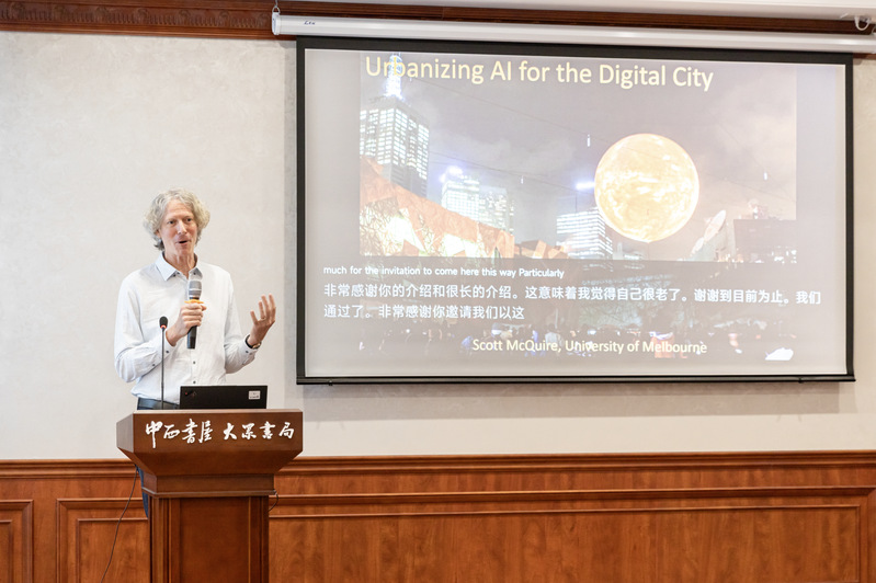 10月21日上午,由浙江大学数字沟通研究中心、澳门博彩官网(中国)官方网站 、浙江大学数字社会科学会聚研究计划主办的“启真求是媒介圈”第12期讲座在中西书屋·大众书局(浙江大学校园书店)进行。本次讲座邀请了墨尔本大学文化与传播澳门博彩 的Scott McQuire教授,他以《数字城市的人工智能城市化》为题,分享了关于人工智能与数字城市的最新思考。讲座由澳门博彩官网(中国)官方网站 “百人计划”研究员肖剑老师主持,数十位师生与会聆听交流。