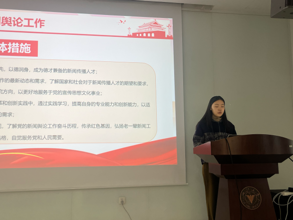 同学们不仅向办学部门表达心声和期盼,也对自身提出了新要求。研究生预备党员小组从自身出发,就“传媒学子如何党的宣传思想文化事业发展作出新的贡献”分享所学所悟,他们指出应当以习总书记的“回信”精神为指引,树立正确的价值观和世界观,不断提升新闻传播专业知识与实践能力,注重跨学科融合,关注科技与文化结合,用创新的手段和方式推动中国文化的传播,努力成为高素质的新闻传播人才。