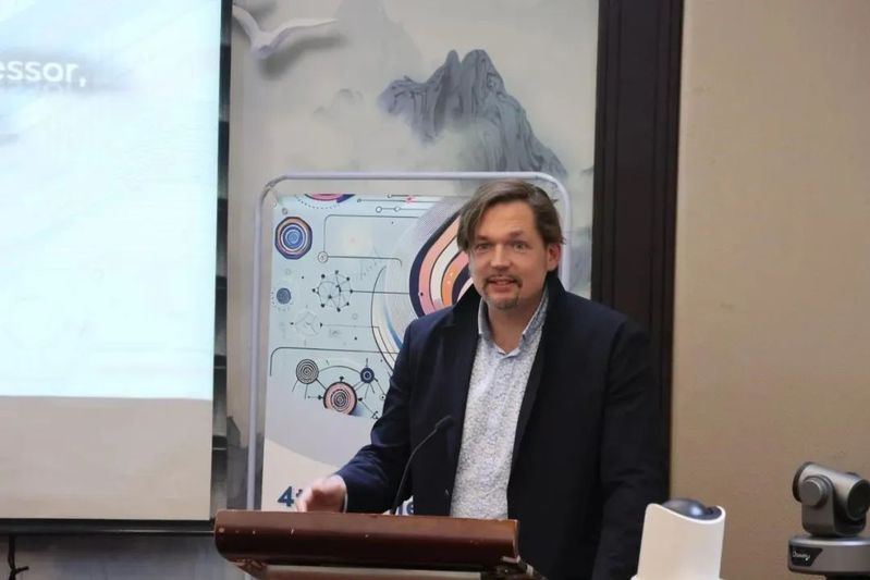 Xiaoge Xu, a professor at Zhejiang Wanli University and the founder of Mobile Studies Congress and Mobile Studies International in Singapore, delivered a report on the intersection of AI and mobile studies. He emphasized that AI is reinventing our identities and work, and that it has a profound impact on the interdisciplinary field of mobile studies encompassing mobile media, mobile objects and mobile communication. He illustrated this by presenting an AI-generated video and discussed the vast potential of AI applications. He hoped that through collaborative efforts, the international mobile studies would be advanced with the usage of AI and mobile technologies.