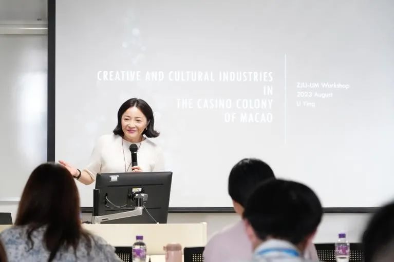 Professor Li Ying first explained the definition and framework of the cultural industry, and then introduced how Macau drew on the experience of Las Vegas to create a new, diversified, and featured exhibition sector through its gambling industry. During the break time, Prof. Li also warmly recommended the recently held biennial exhibition in Macau.