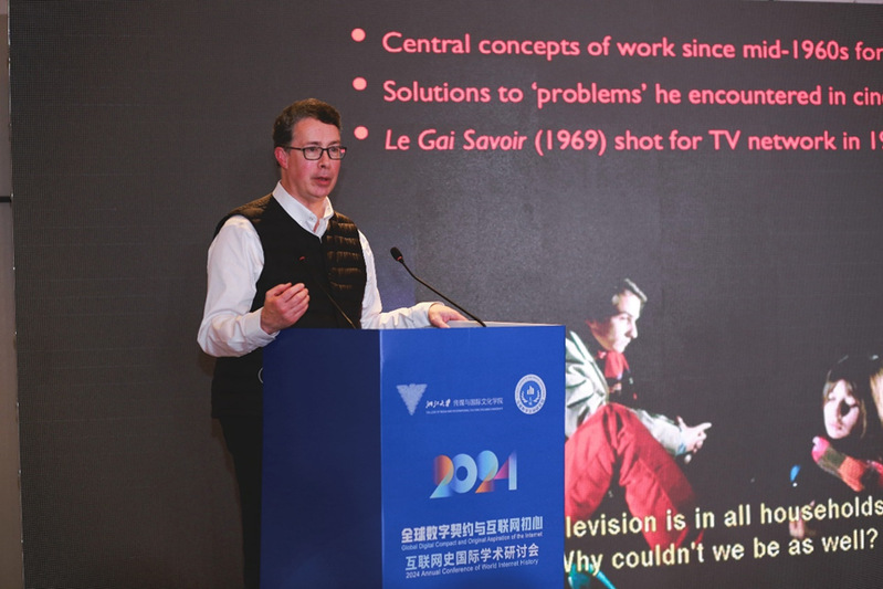 Associate Professor Mark Joseph Williams from Dartmouth College addressed the intersection of television, film, and online media ecosystems. Through historical examples, including a segment from Le Gai Savoir (1969), he emphasized the need to reimagine media narratives and develop new frameworks that resonate with contemporary society.