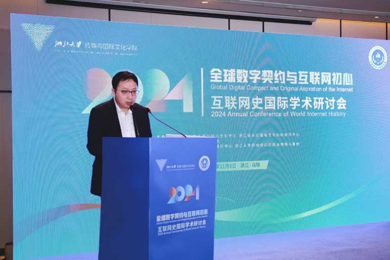 On the afternoon of November 9, the highly anticipated 2024 International Symposium on Internet History was successfully held in the picturesque water town of Wuzhen. The symposium was jointly organized by the College of Media and International Culture at Zhejiang University and the Zhejiang Provincial Cultural Innovation Center for Common Prosperity, hosted by the Wuzhen Institute for Digital Civilization, and co-organized by the International Communication Research Center and the International Cyberspace Governance Research Base at Zhejiang University. Once again, during this golden autumn, Wuzhen became the focus of the global internet community, bearing witness to this landmark event in internet history.